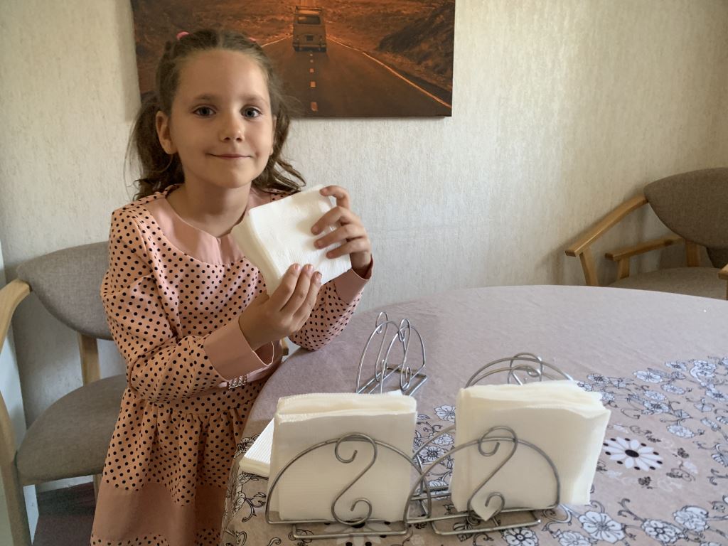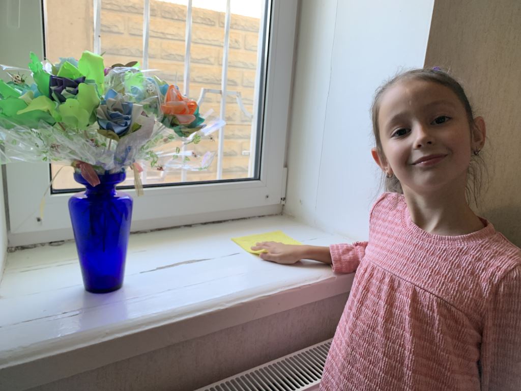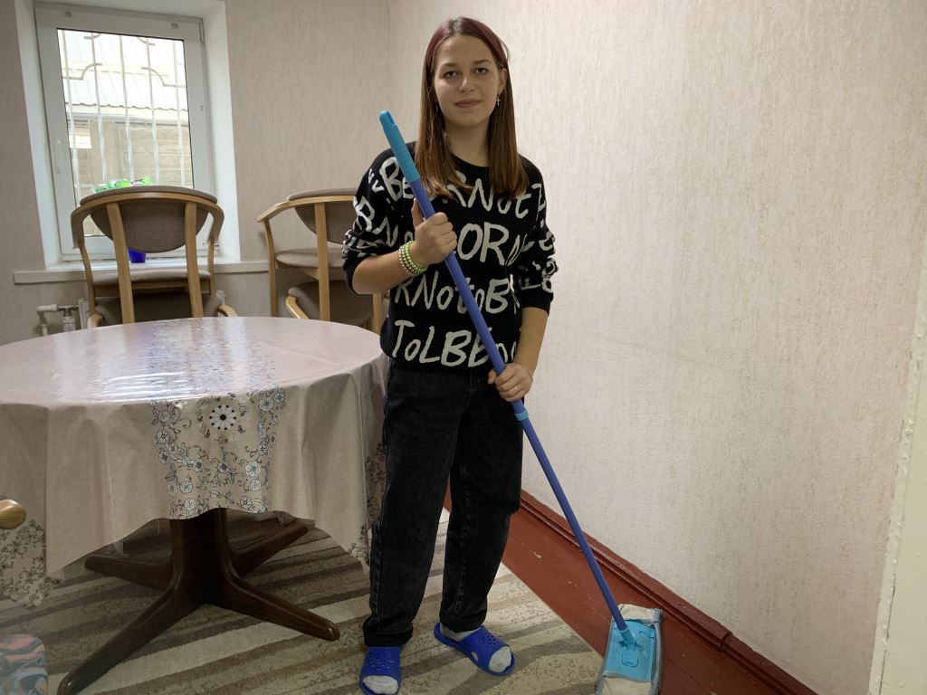 «Я хочу навчитися прибирати так, щоб в мене вдома був такий же порядок як в «Затишній схованці», — мріє Настя. Найменші діти з групи «Сонячна сімейка» вчаться виконувати прості доручення. «Промиваю ганчірку, потім викручую її, протираю підвіконня»,- повільно промовляє Віка та виконує відповідні дії. «Один, два, три, чотири, п’ять»,- Софія рахує серветки та накладає їх у Серветник. Дівчатка з групи «Острів мрійниць» складають посуд в посудомийну машину, підмітають подвір’я, прибирають в альтанці. «Справжні подружки» виконують більш відповідальну роботу: слідкують за канцелярією, роблять вологе прибирання, вчаться мити вікна та дзеркала. Таким чином діти розвиваються, набувають потрібний досвід та вчаться цінувати свій та чужий труд. Наші вихованці живуть в «загублених селах», в нужденних родинах. Складні умови їхнього життя не дозволяють отримати найпростіші навички прибирання. На проекті є така можливість. Тому кожна дівчинка обрала собі маленьку відповідальність. Ми підтримуємо успіхи дітей та намагаємося навчити їх виконувати роботу якісно.
