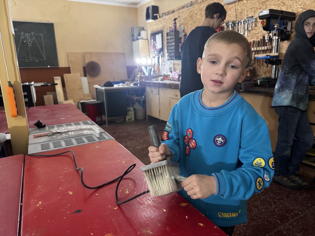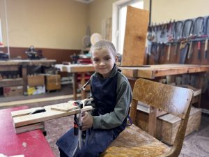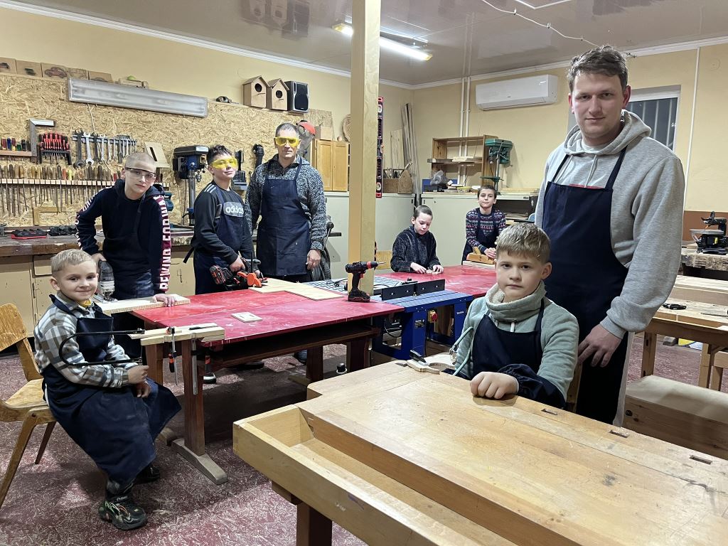 Максим зростає у великій багатодітній родині. Йому 8 років. Коли хлопчик тільки-но починав приходити в Майстерню для хлопців, то в своїй уяві він готовий був все зробити за один раз, думав наробити одразу багато подарунків і татові, і мамі, і сестрам. Наставникам Данилу та Ігорю доводилося приділяти достатньо уваги Максиму, підтримувати і мотивувати його, щоб хлопчик не зневірився в своїх силах і можливостях, коли побачив, що є певна різниця між його уявою і реальними вміннями. І поступово перша поробка була зроблена. Це була його особиста перемога. І хоч і тепер Максим втомлюється і у нього не виходить за один раз, він вчиться терпінню та цілеспрямованості в роботі. Наставники часто ставлять Максима в приклад більш дорослим хлопцям, що тільки но прийшли до майстерні й хочуть опанувати одразу всі інструменти. Добре, що навіть у війну діти мають змогу вчитись, спілкуватись один з одним і поступово отримувати корисні навички для свого подальшого життя. Дякуємо всім, хто підтримує всі напрямки нашої роботи.