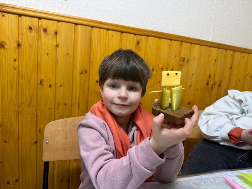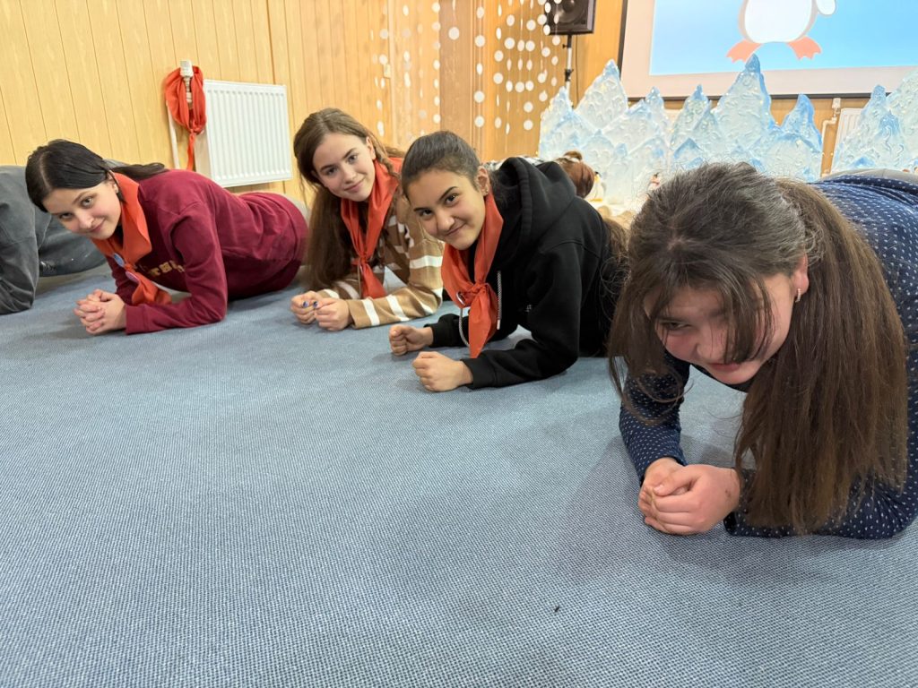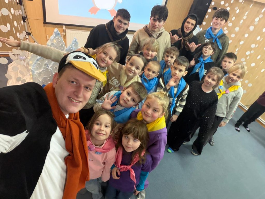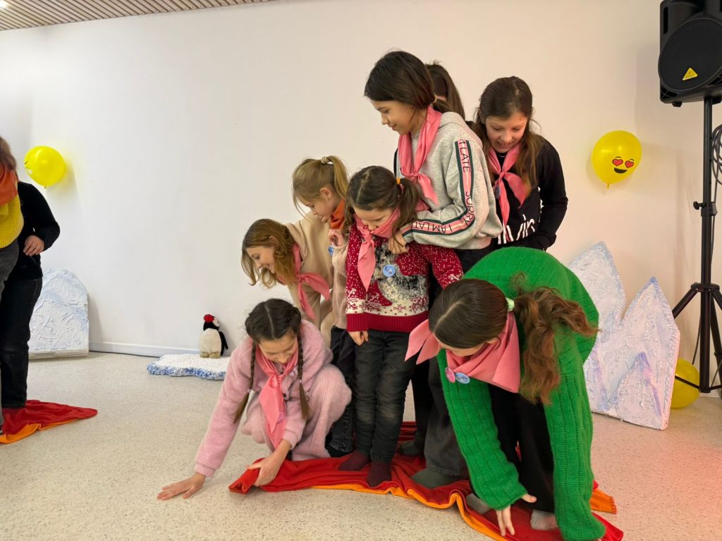 Сьогодні наш табірний герой, пінгвін Петрик, був не в настрої і гнівався на все навколо, а коли на сцені з’явилась його емоція, у вигляді героя, всі зрозуміло що це злість. Чи часто ми відчуваємо цю емоцію? Так нажаль часто. Коли знову повідомляють про ракетні обстріли, коли електрики немає вже третю добу, коли серед ночі треба іти в підвал замість того щоб спокійно спати. Тож про таку емоцію як злість  в час війни варто поговорити з дітьми. Початок дня був веселим — діти голосно реготали коли спостерігали як Петрик злився та гарчав. Діти викрикували поради для Петрика, як він може заспокоїтись. Та заспокоїла Петрика наша весела табірна руханка. А потім діти пішли своїми командами по станціям де з різних сторін розглядали таку емоцію як злість. На практиці пробували різні засоби як опанувати свого внутрішнього дракона, як не наробити лиха в пориві злості. На станції серце діти отримали м’ячики антістрес, як ще один засіб заспокоїтись та взяти свої емоції під контроль.