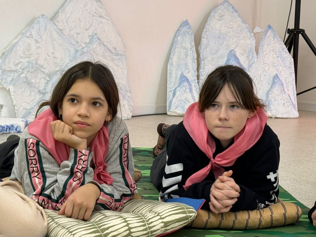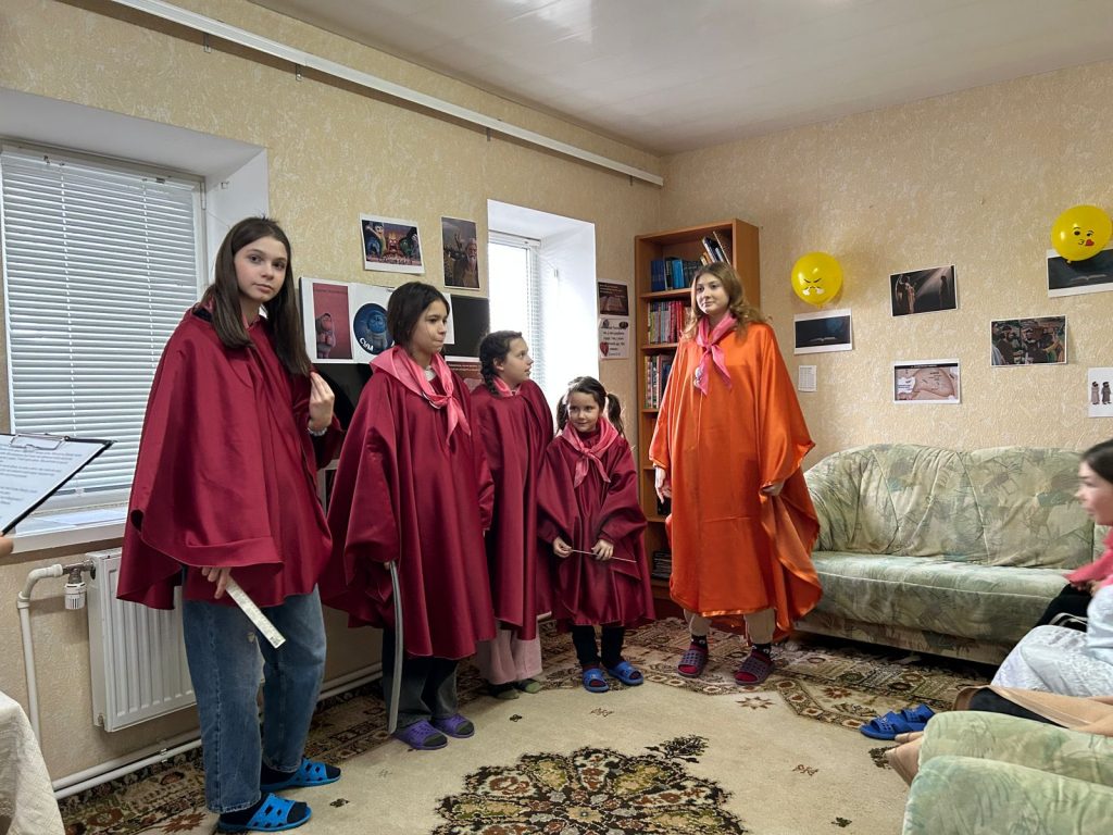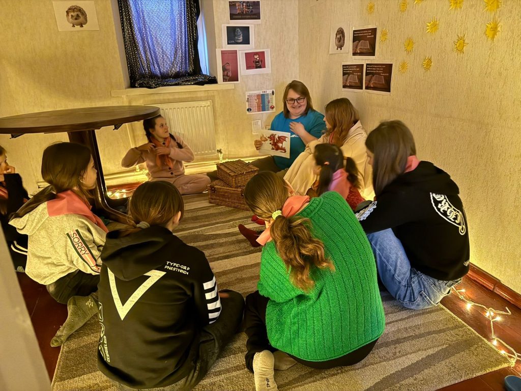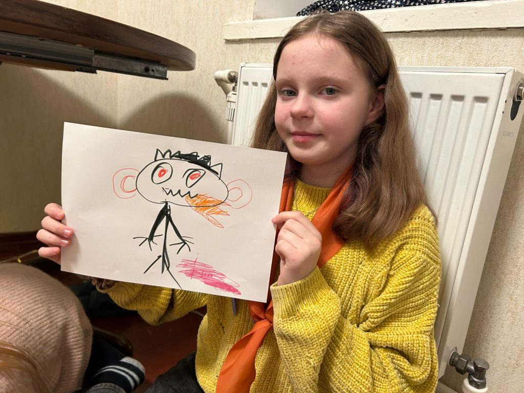 Сьогодні наш табірний герой, пінгвін Петрик, був не в настрої і гнівався на все навколо, а коли на сцені з’явилась його емоція, у вигляді героя, всі зрозуміло що це злість. Чи часто ми відчуваємо цю емоцію? Так нажаль часто. Коли знову повідомляють про ракетні обстріли, коли електрики немає вже третю добу, коли серед ночі треба іти в підвал замість того щоб спокійно спати. Тож про таку емоцію як злість  в час війни варто поговорити з дітьми. Початок дня був веселим — діти голосно реготали коли спостерігали як Петрик злився та гарчав. Діти викрикували поради для Петрика, як він може заспокоїтись. Та заспокоїла Петрика наша весела табірна руханка. А потім діти пішли своїми командами по станціям де з різних сторін розглядали таку емоцію як злість. На практиці пробували різні засоби як опанувати свого внутрішнього дракона, як не наробити лиха в пориві злості. На станції серце діти отримали м’ячики антістрес, як ще один засіб заспокоїтись та взяти свої емоції під контроль.