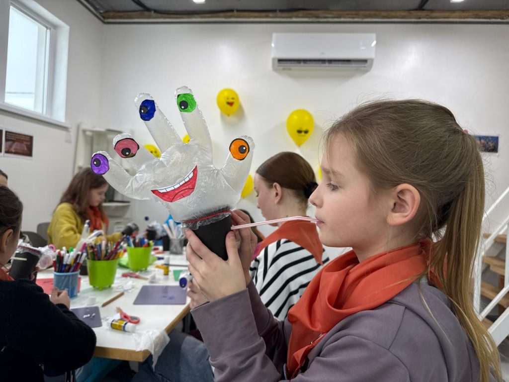 Сьогодні в нашому терапевтичному таборі ми говоримо про тривожність. Наш Пінгвін Петрик має багато привидів для хвилювань, точно як і діти. Веселий початок дня з героєм тривожністю, створив чудову теплу атмосферу і тоді на станціях, які діти відвідували, бесіди та розмови текли легко та відверто. Безліч хвилювань та тривог були озвучені сьогодні. «Іноді мені здається що я чую гул ракети. Це може бути просто автобус за вікном але моє серце калатає і руки тремтять», «А я боюсь військову техніку. Коли ми їхали на шкільному автобусі я бачила великі машини, це було так страшно». «А я боюсь тільки танків». Діти що живуть у війні часто відчувають тривожність, часом це стає їх звичайним станом. Вміти змінити тривожні думки, знати та відслідкувати, що саме додає тривожності стає важливою навичкою для дітей і дорослих. На одній зі станцій діти розмірковували що в житті вони можуть контролювати, а що ні. Виявилось багато речей є за межами нашого контролю і сильна тривога не змінить нічого. Але що робити? Де знайти спокій та тишу. Кожна станція наштовхувала на ідеї та практичні прийоми долання тривожності та опанування власних емоцій.